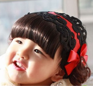 A delicate pink headband with bangs do small flower children's first year wine with a princess dress beautiful turned forehead bangs are very smooth behind the elastic elastic very good bangs length can be trimmed by yourself